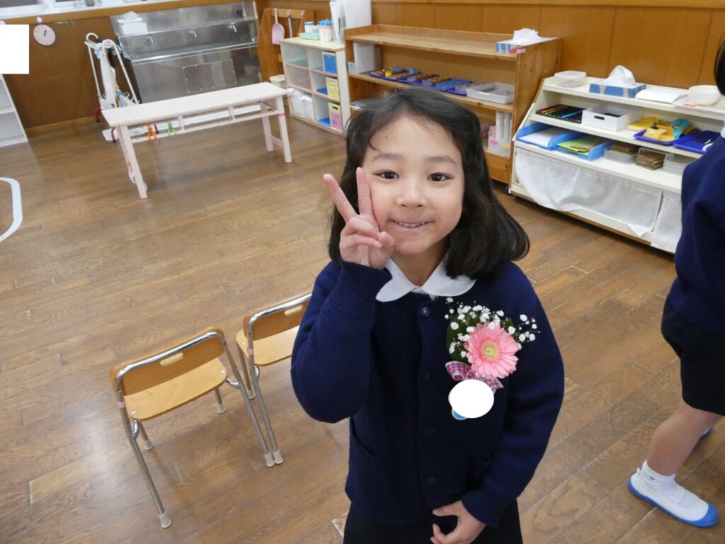 Aさん、ご卒園おめでとうございます!いつも元気いっぱい、笑顔いっぱい、笑い声が絶えないAさん。困っているお友だちにそっと寄り添える優しい姿を先生たちは忘れません!小学校に行っても、みんなのたくましさ、優しさを大切に大きく成長してくれることを心からお祈りしています。天使幼稚園に来てくれて、一緒に過ごしてくれてありがとうございました。みんなと過ごした時間は先生たちの宝物です!またいつでも幼稚園に遊びに来てくださいね⭐
