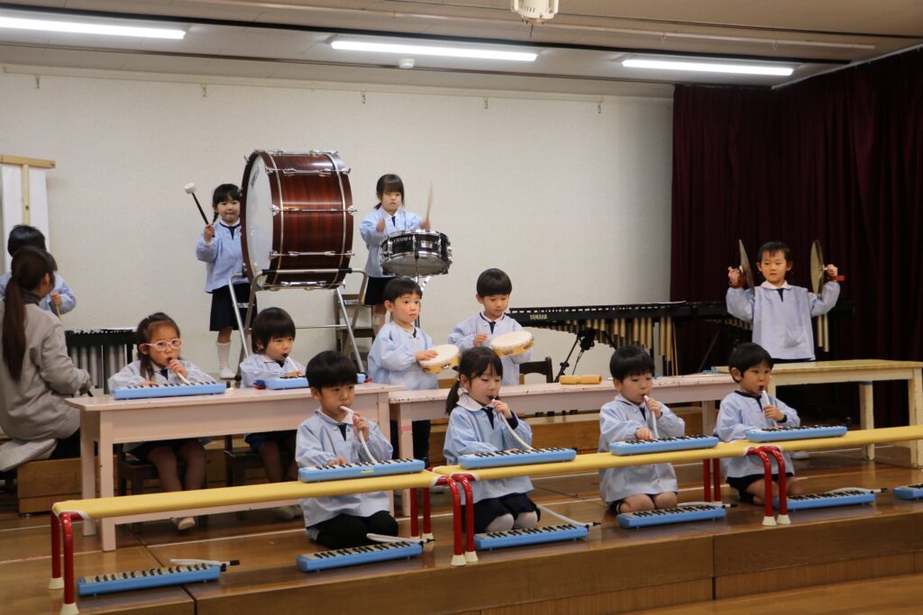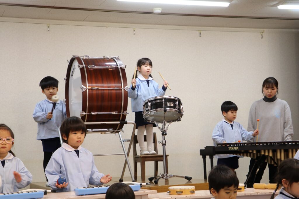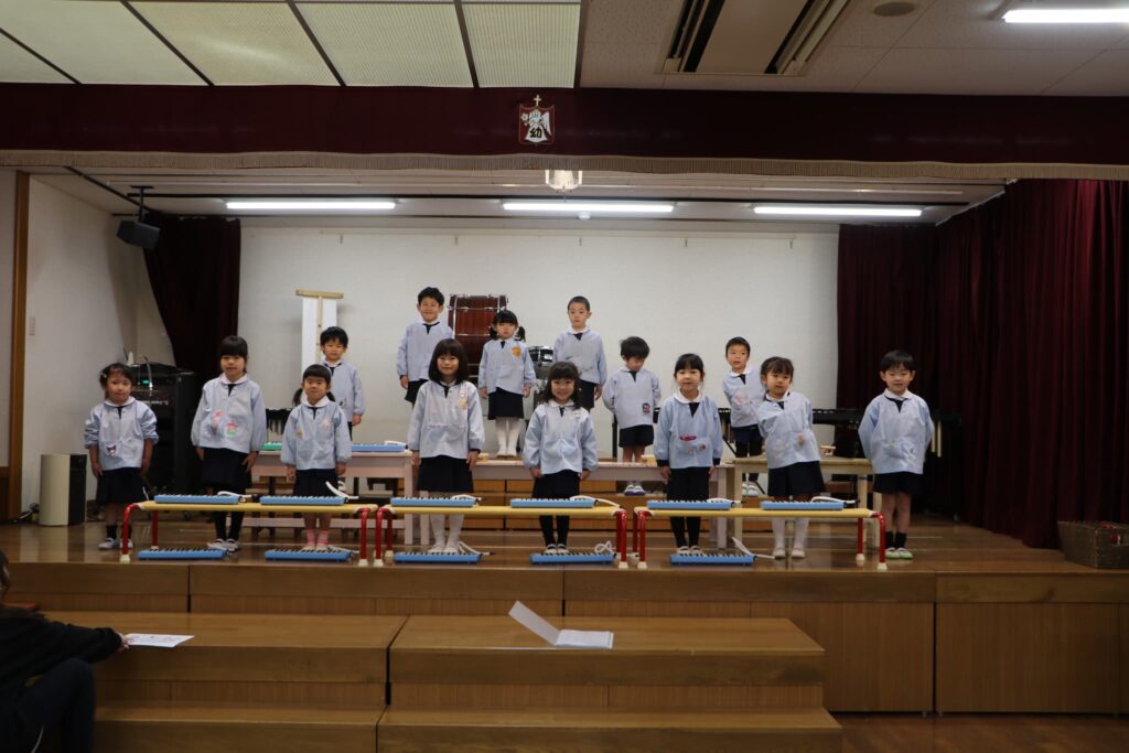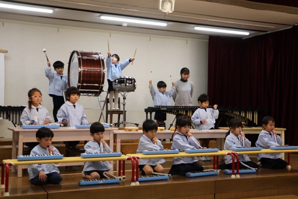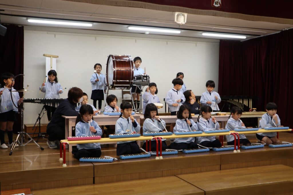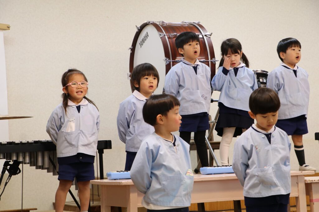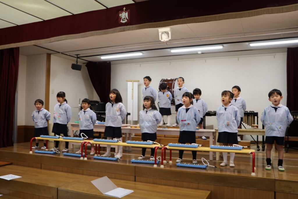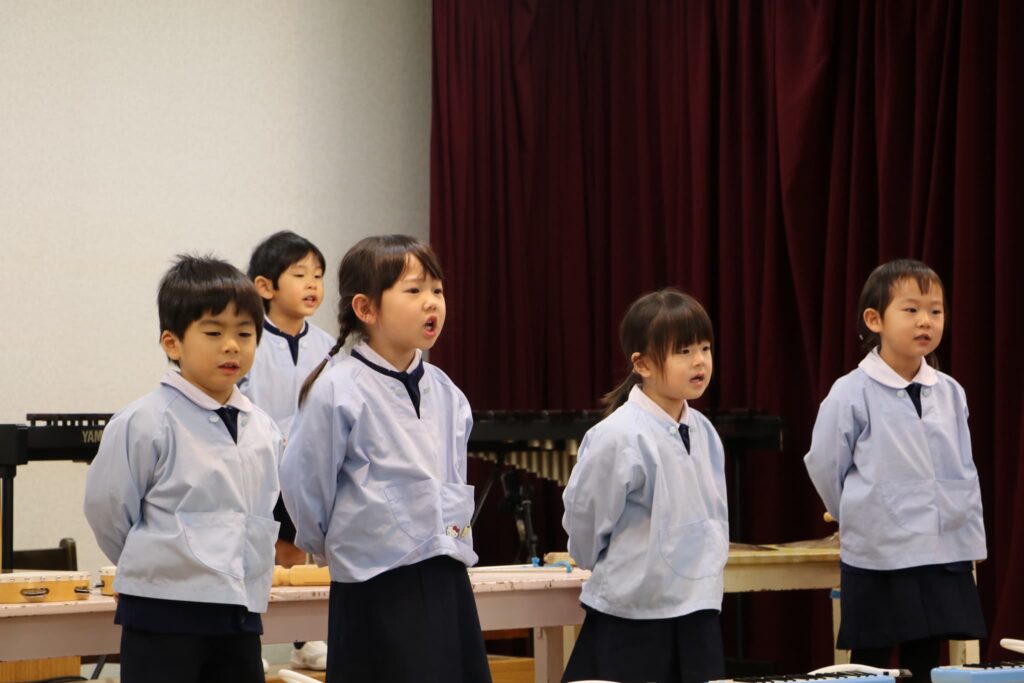 ステージでの練習もずいぶん慣れ、お友達と一緒に息を合わせて歌い、演奏することがとても楽し様子の子どもたちです。本番まであと2週間。時間はあっという間に過ぎていきますが、子どもたちが一生懸命取り組む一瞬、一瞬を大切に過ごしていきたいと思います♪