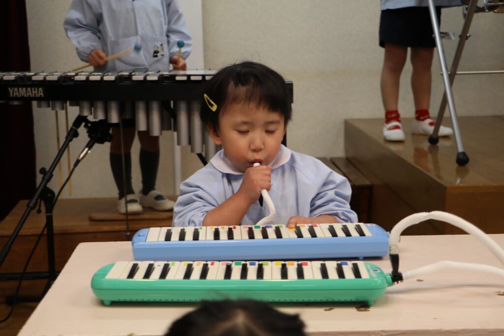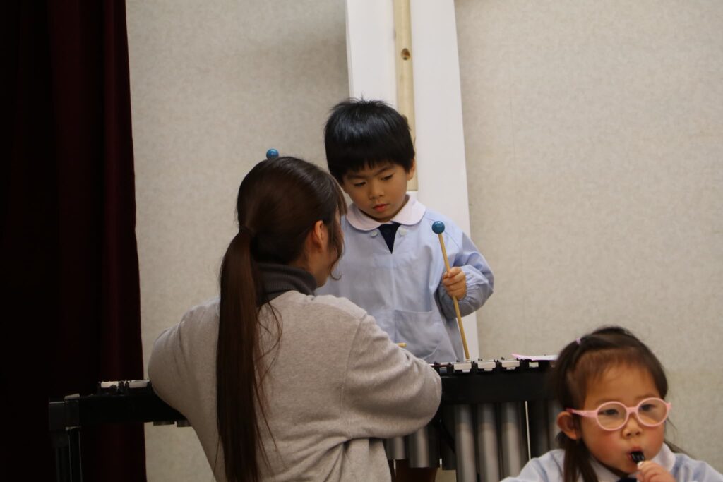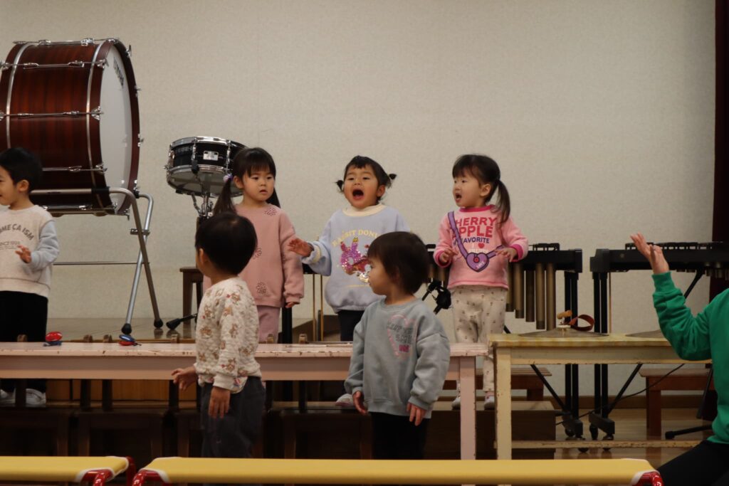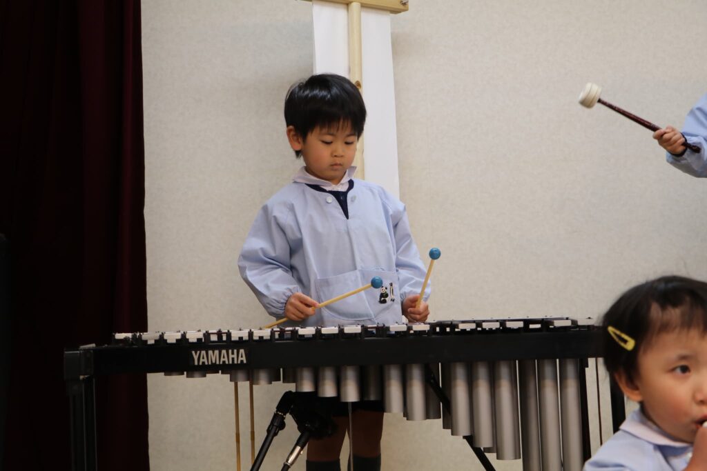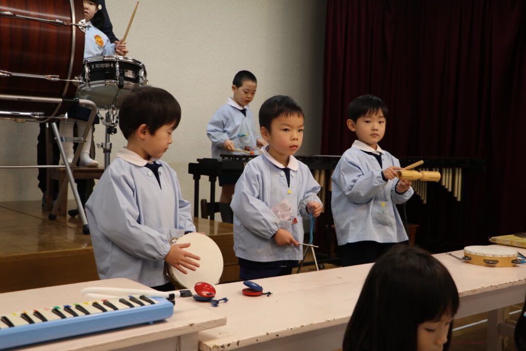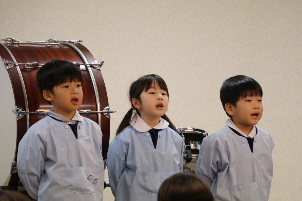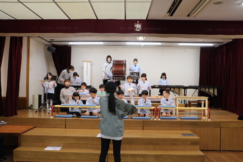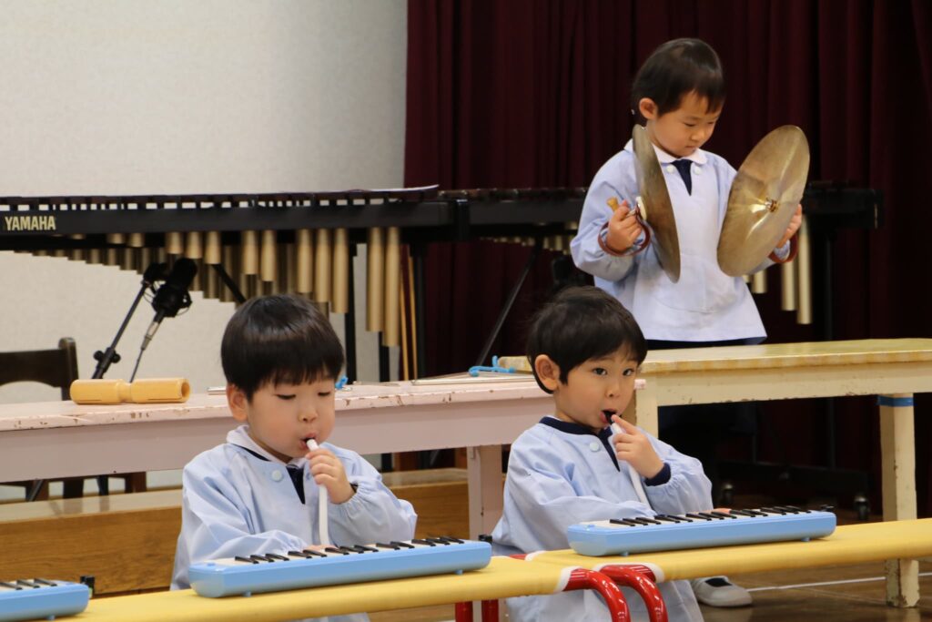 ステージでの練習もずいぶん慣れ、お友達と一緒に息を合わせて歌い、演奏することがとても楽し様子の子どもたちです。本番まであと2週間。時間はあっという間に過ぎていきますが、子どもたちが一生懸命取り組む一瞬、一瞬を大切に過ごしていきたいと思います♪