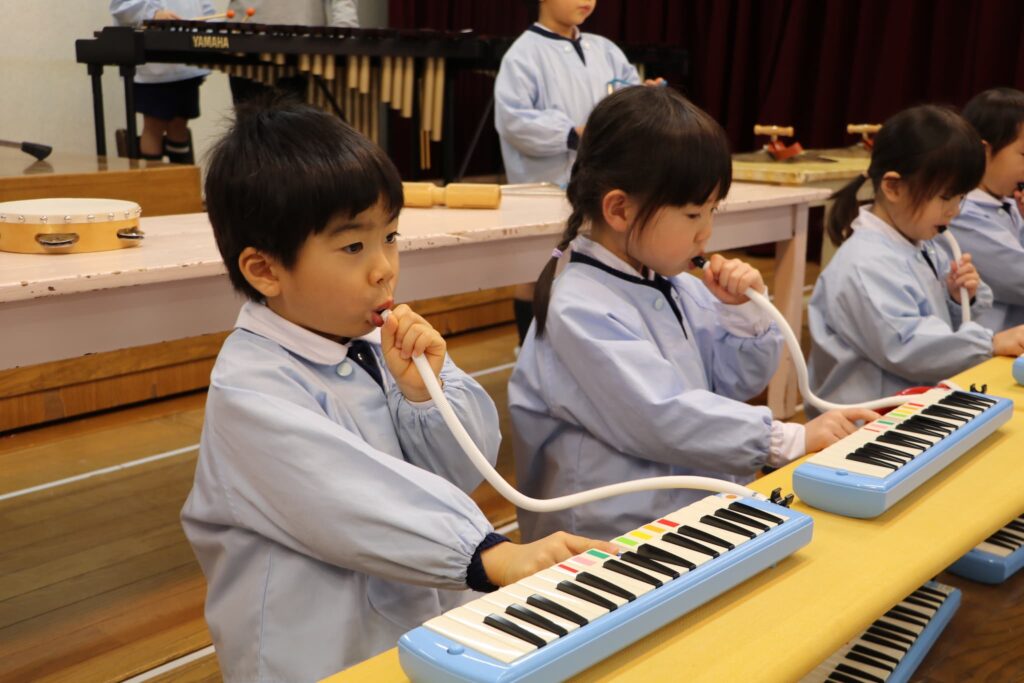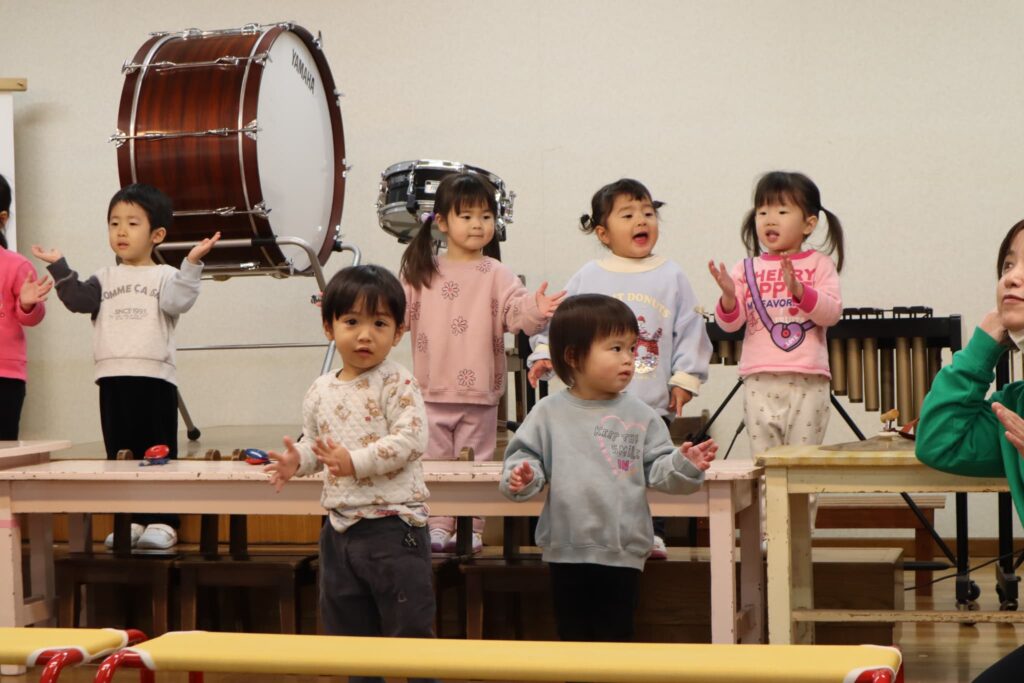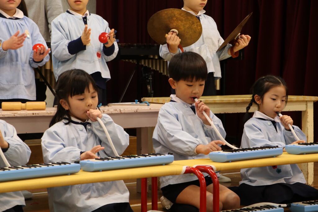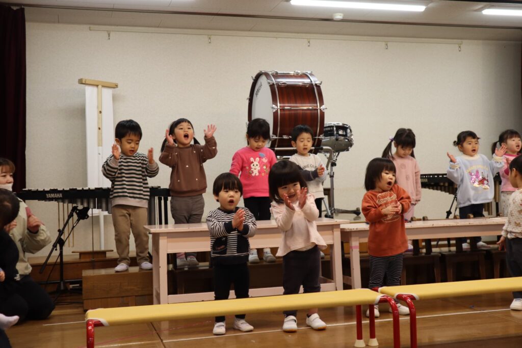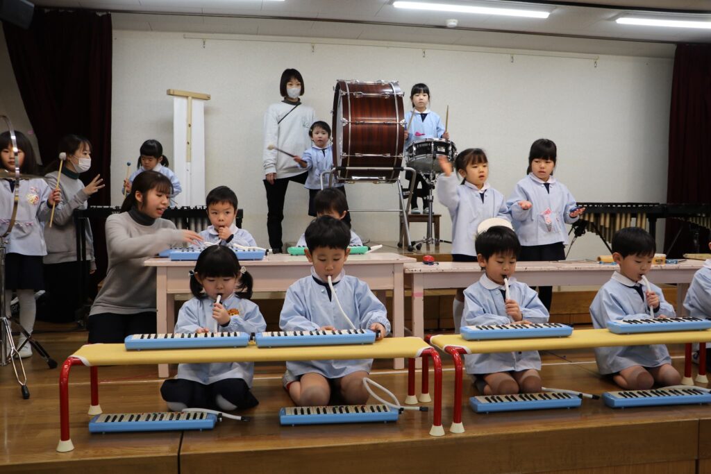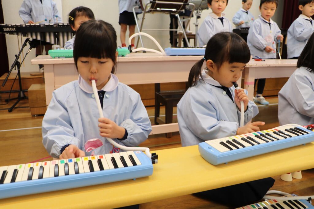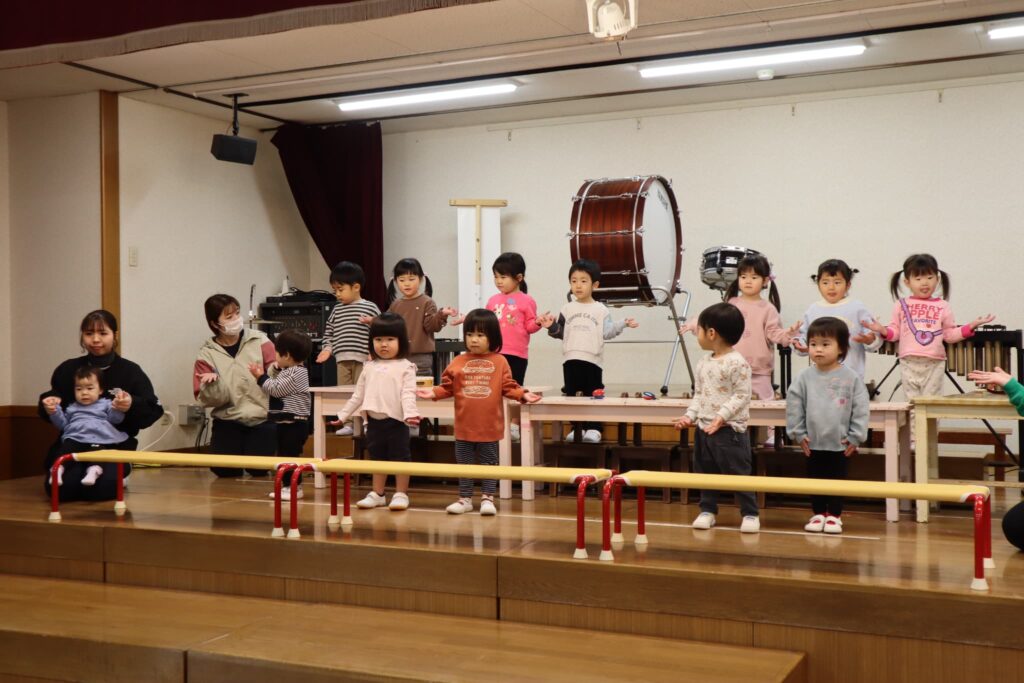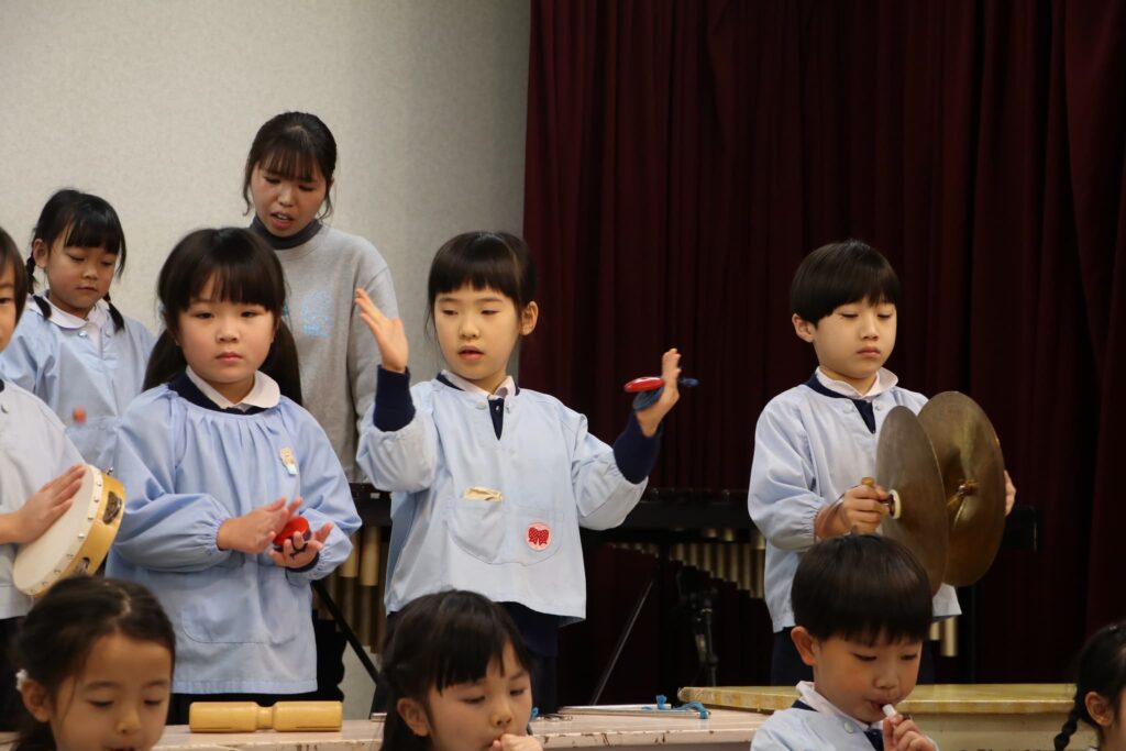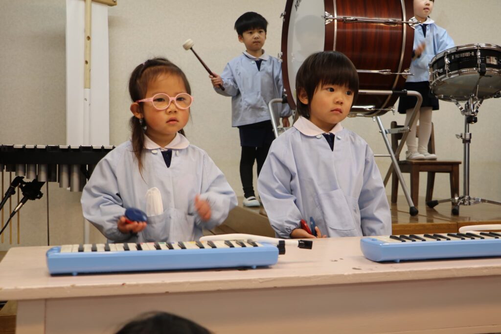 ステージでの練習もずいぶん慣れ、お友達と一緒に息を合わせて歌い、演奏することがとても楽し様子の子どもたちです。本番まであと2週間。時間はあっという間に過ぎていきますが、子どもたちが一生懸命取り組む一瞬、一瞬を大切に過ごしていきたいと思います♪