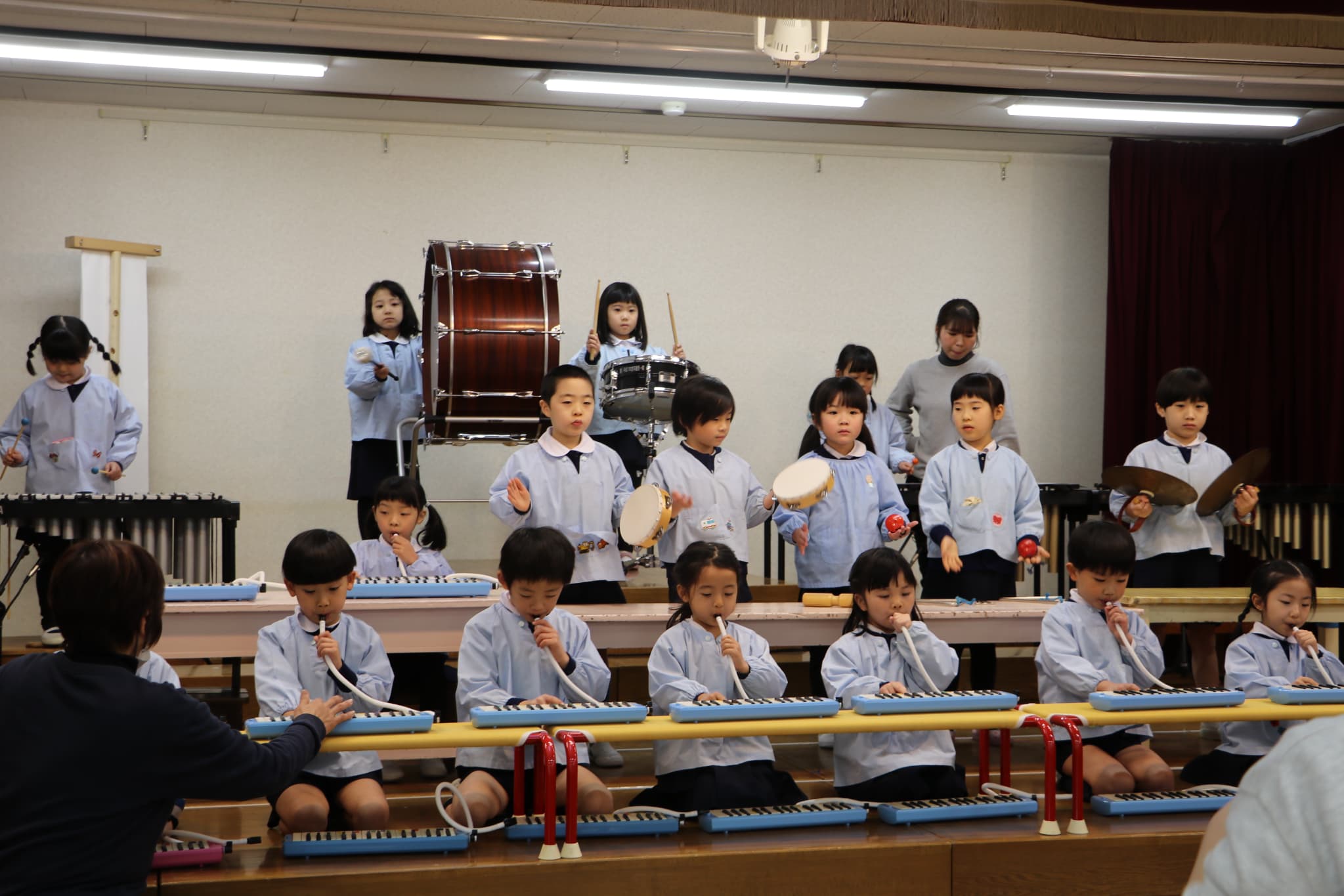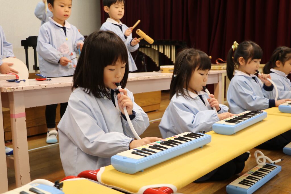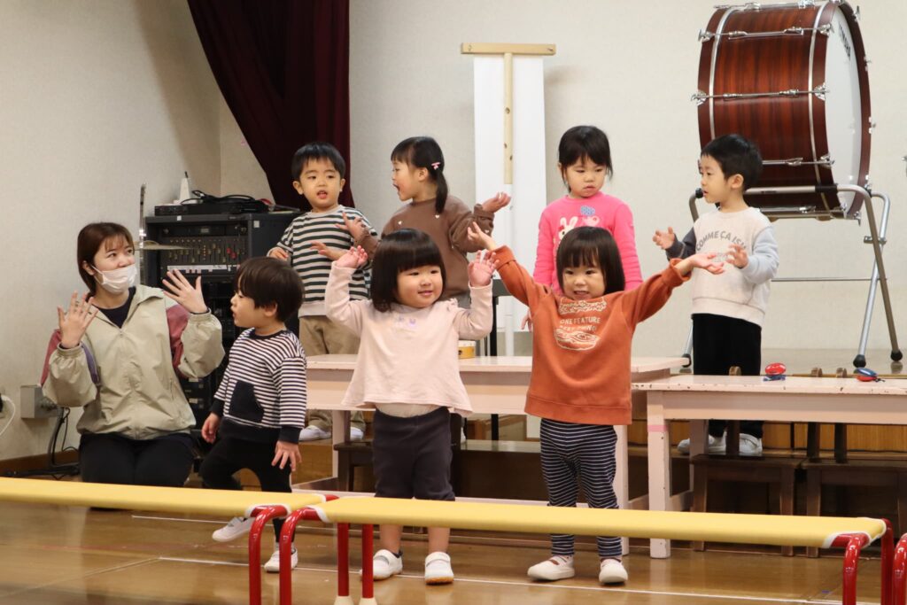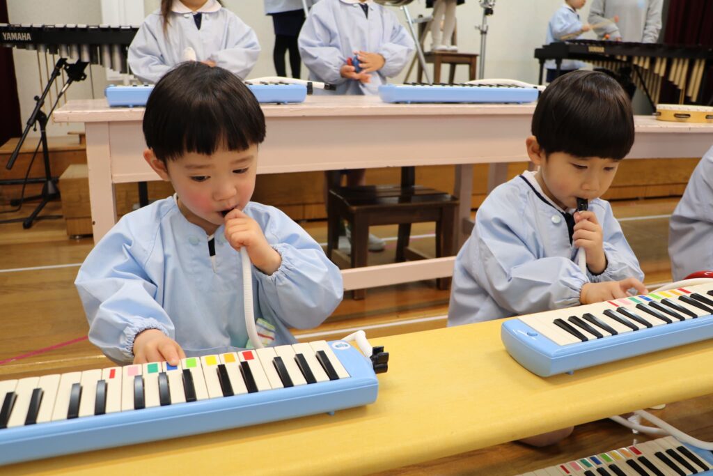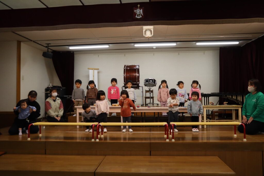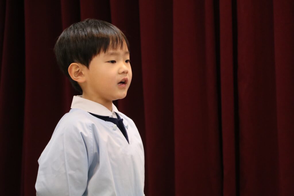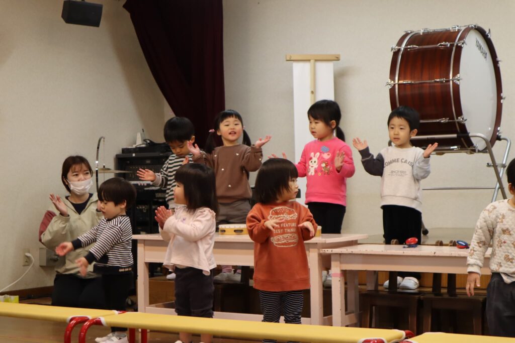 ステージでの練習もずいぶん慣れ、お友達と一緒に息を合わせて歌い、演奏することがとても楽し様子の子どもたちです。本番まであと2週間。時間はあっという間に過ぎていきますが、子どもたちが一生懸命取り組む一瞬、一瞬を大切に過ごしていきたいと思います♪