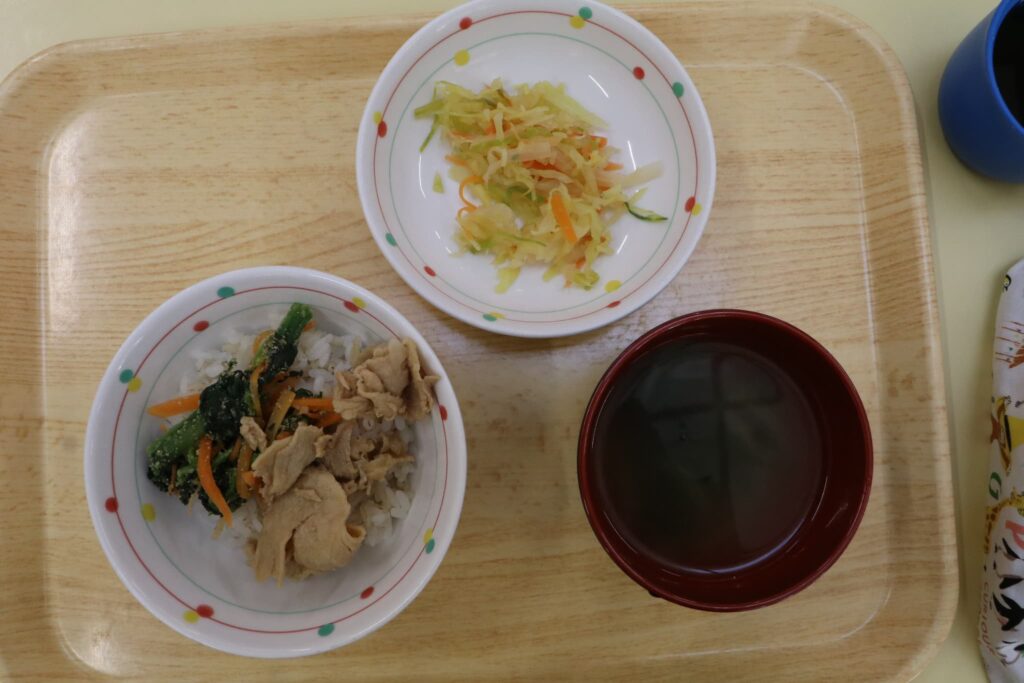 今日の給食:ビビンバ丼・キャベツのナムル・中華スープ