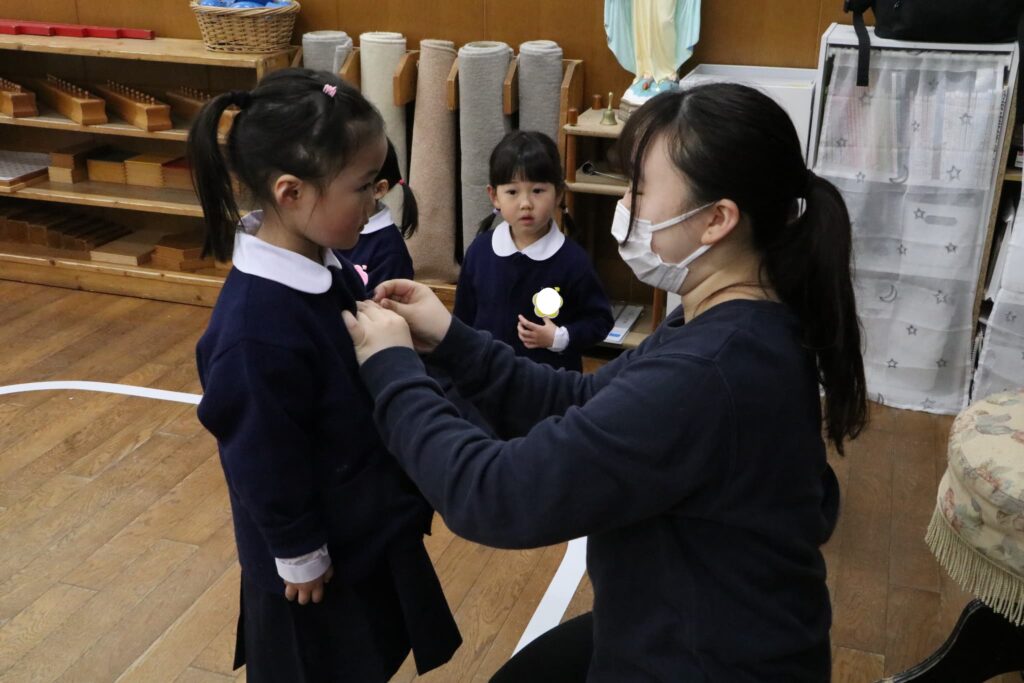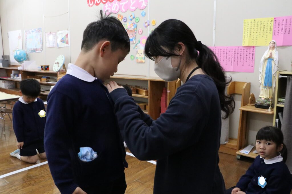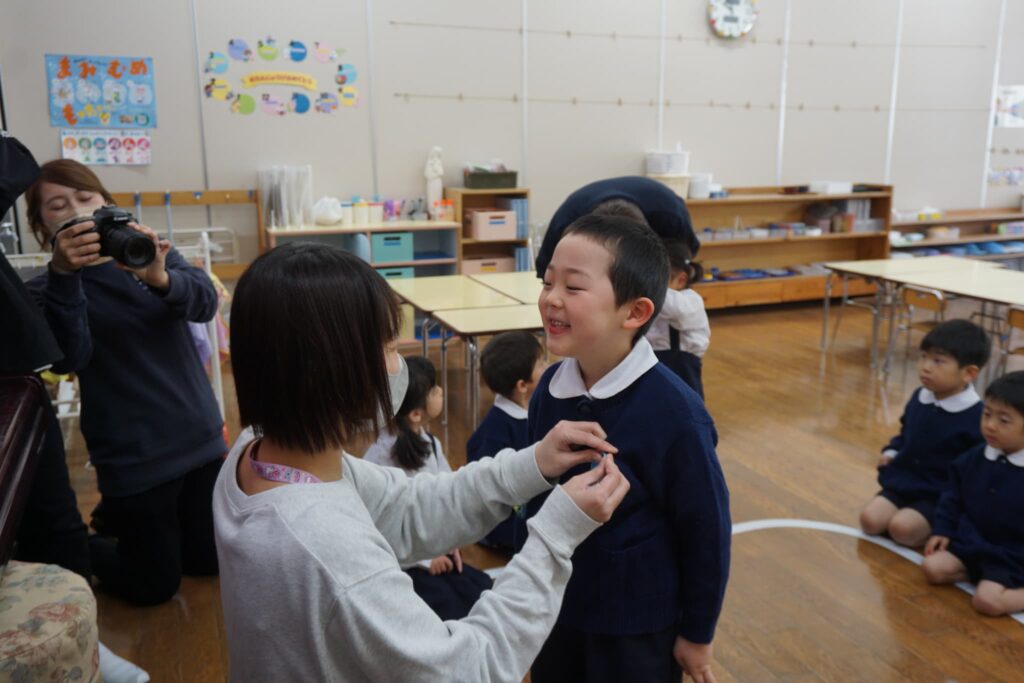 新しい学年の名札を先生につけてもらいました!