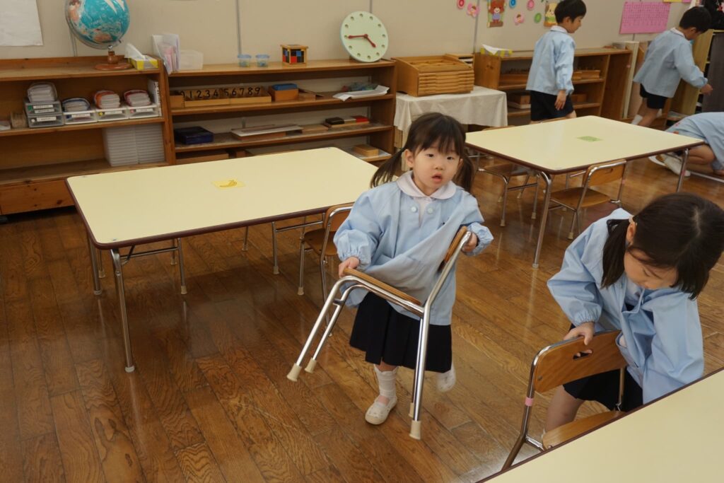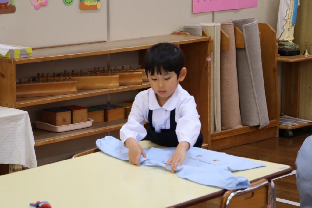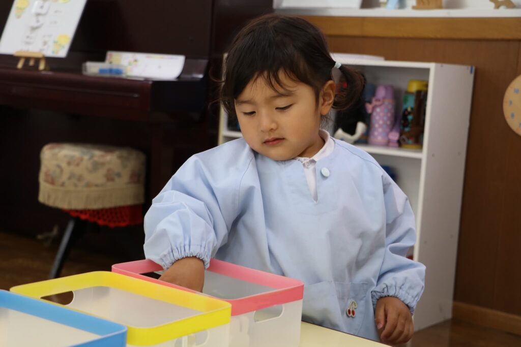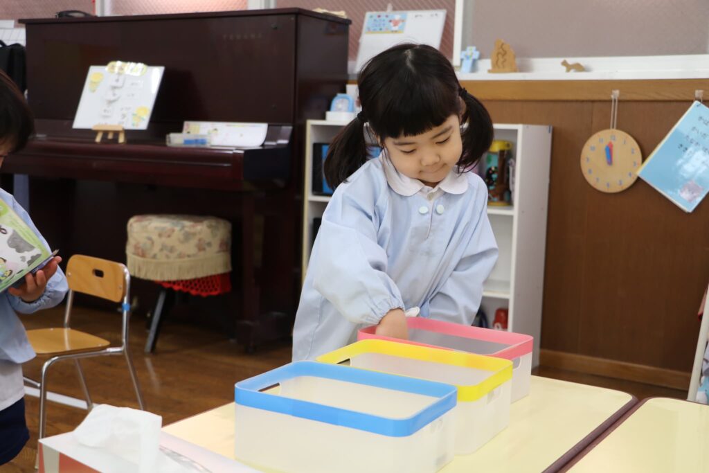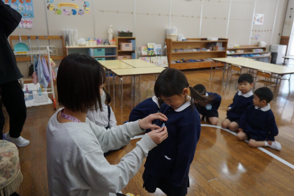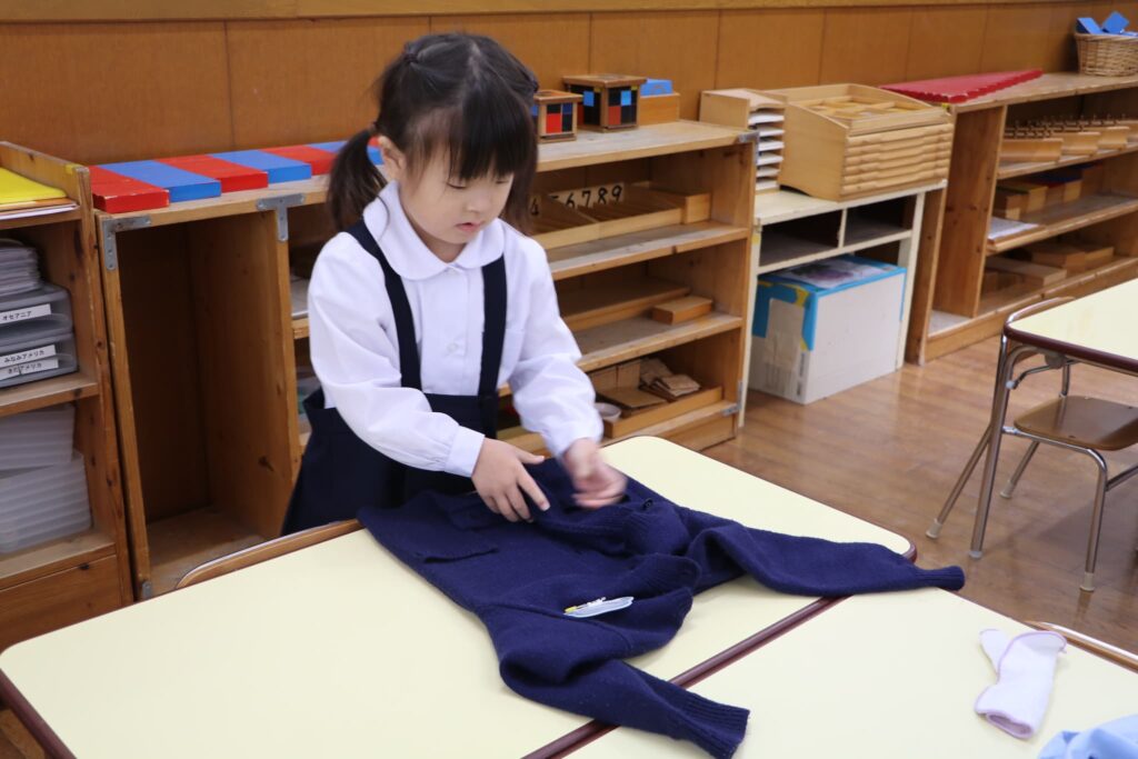 お部屋でスモックに着替えます。