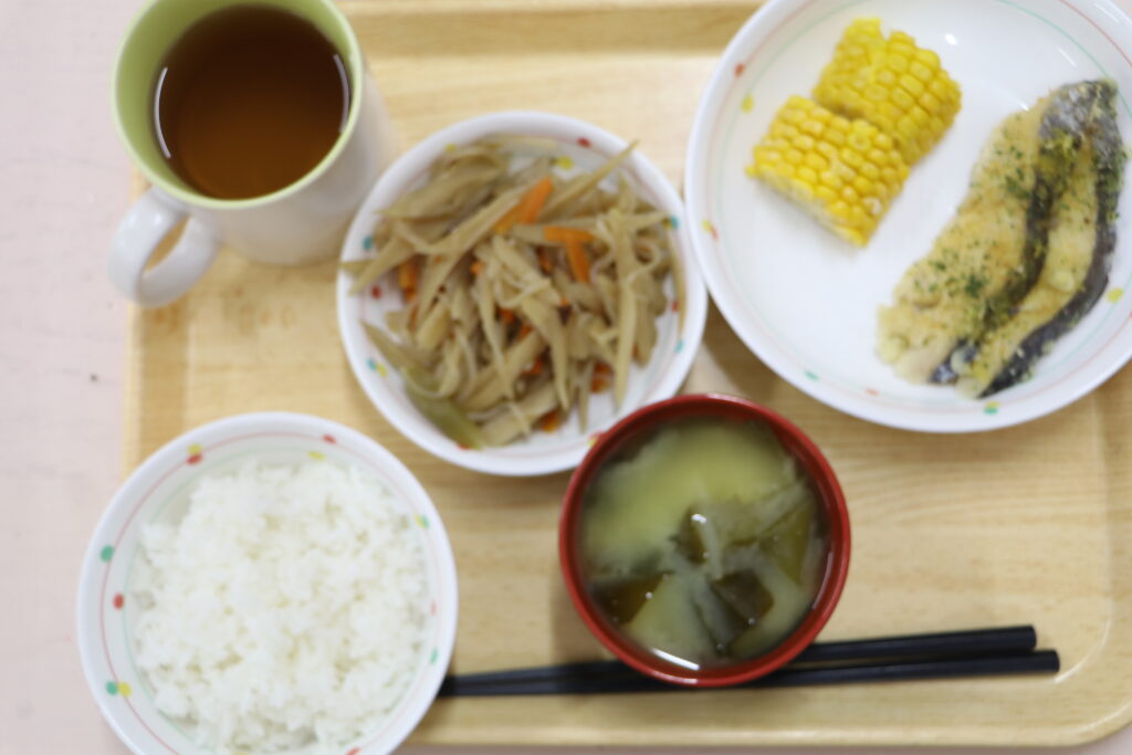 今日の給食:魚のカレーパン粉焼き・きんぴらごぼうごはん・みそ汁