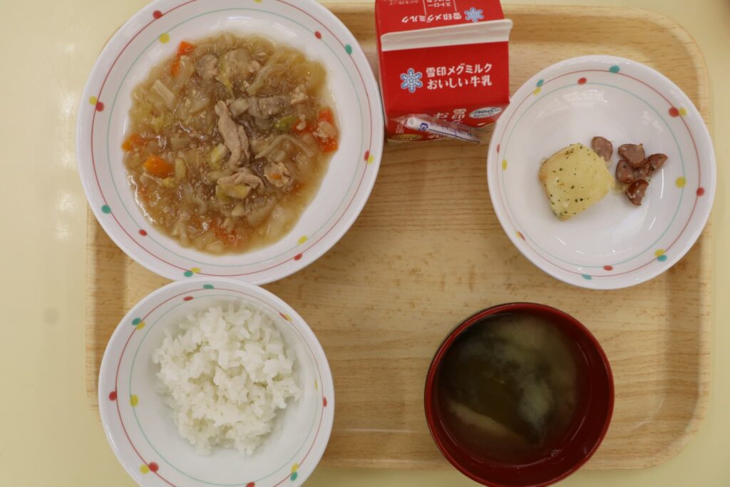 今日の給食:八宝菜・ジャーマンポテト・ごはん・みそ汁・牛乳