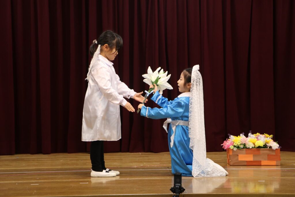 今日は全学年衣装を着て練習をしました。役になり切って演じる姿はとても可愛らしく、嬉しそうにステージに立つ姿が印象的でした。明日はリハーサルと行います。みんなで元気に演じることができますように☆