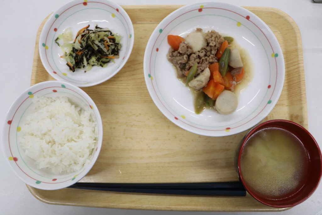 今日の給食:牛肉と里芋の旨煮・磯部和え・ご飯・みそ汁