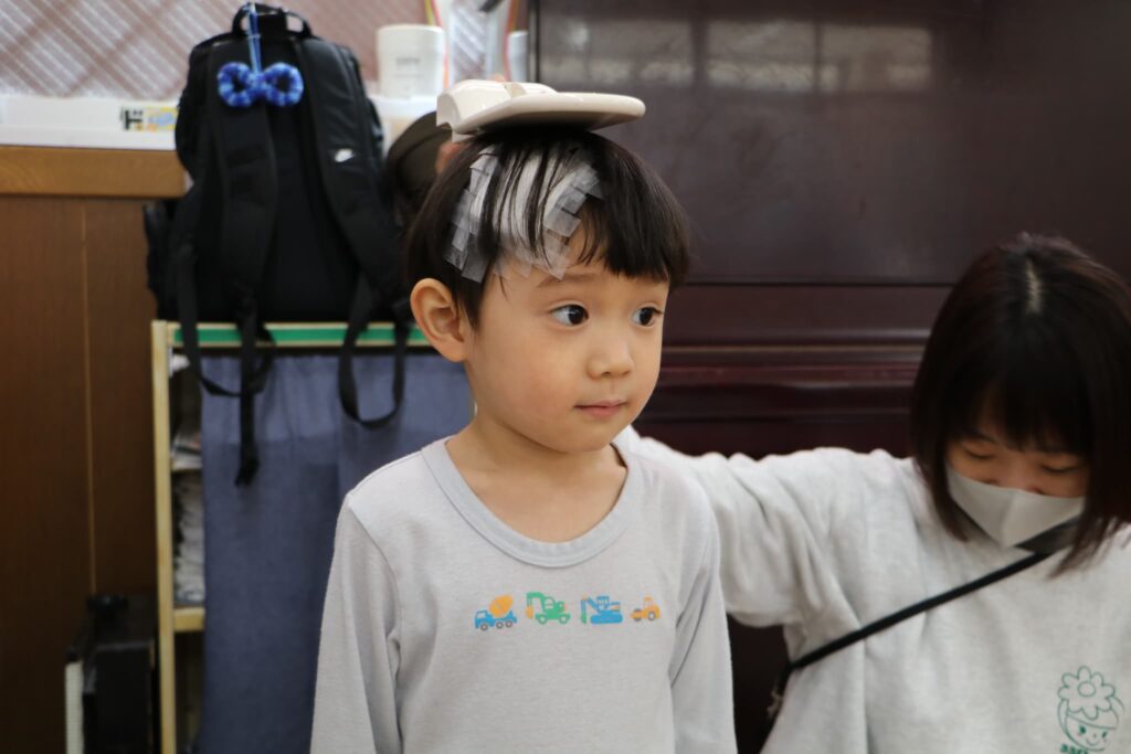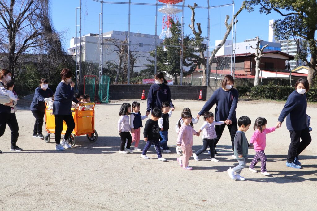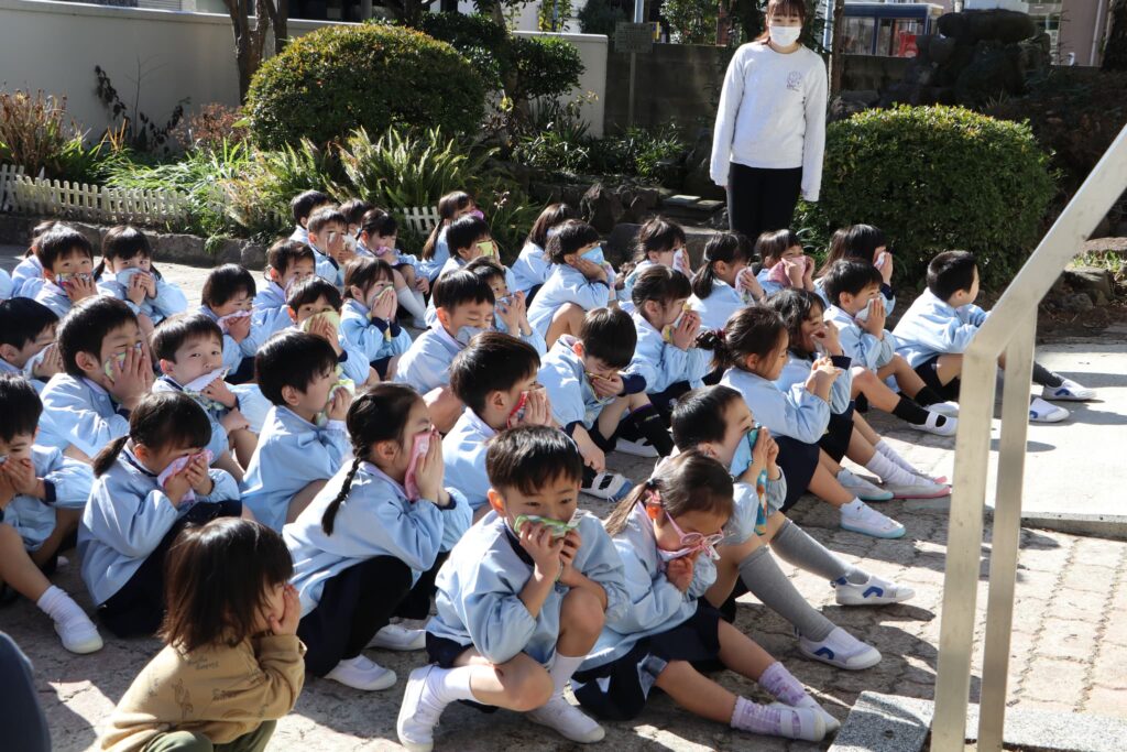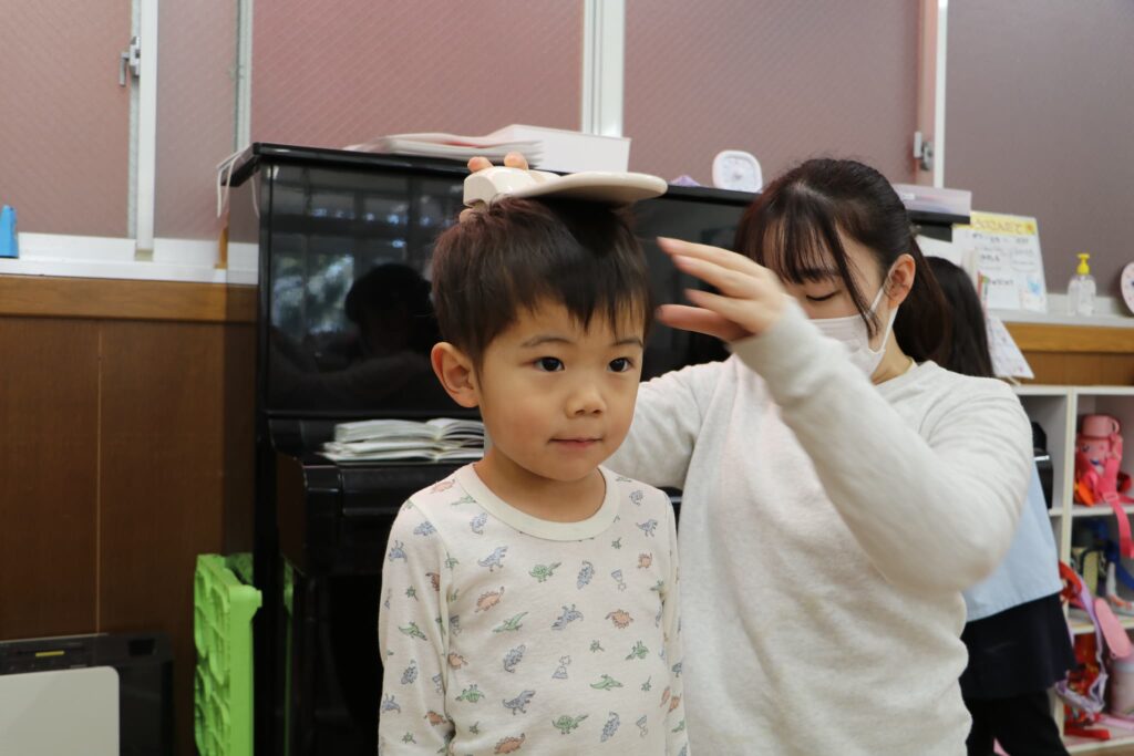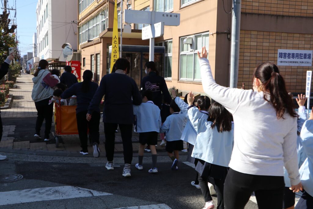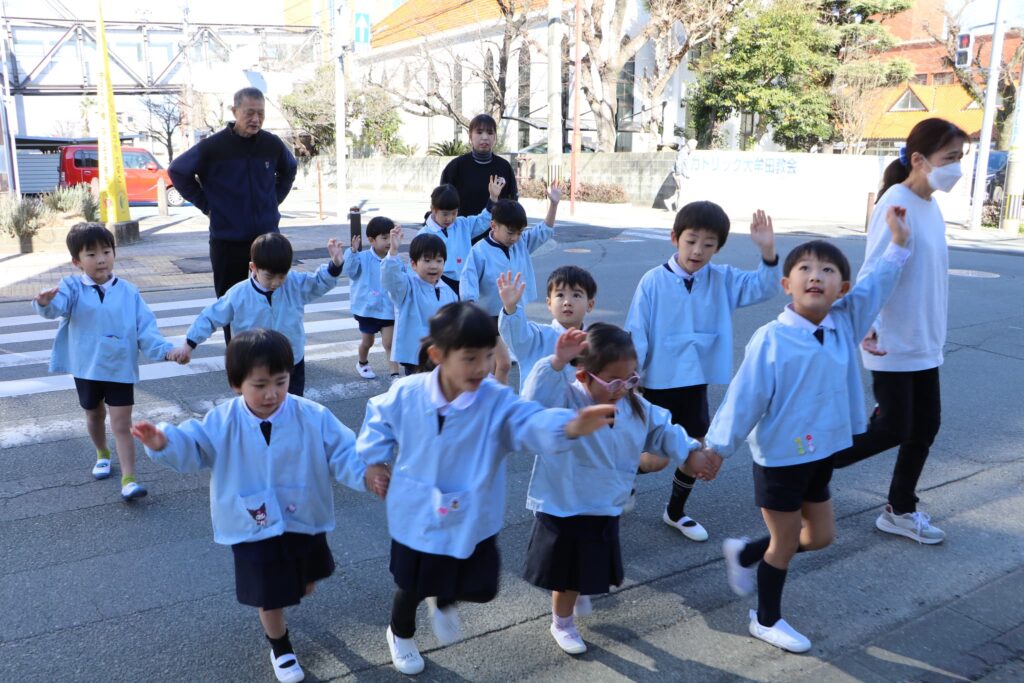 地震が起きたことを想定し、幼稚園から避難指定校へ歩いて避難しました。