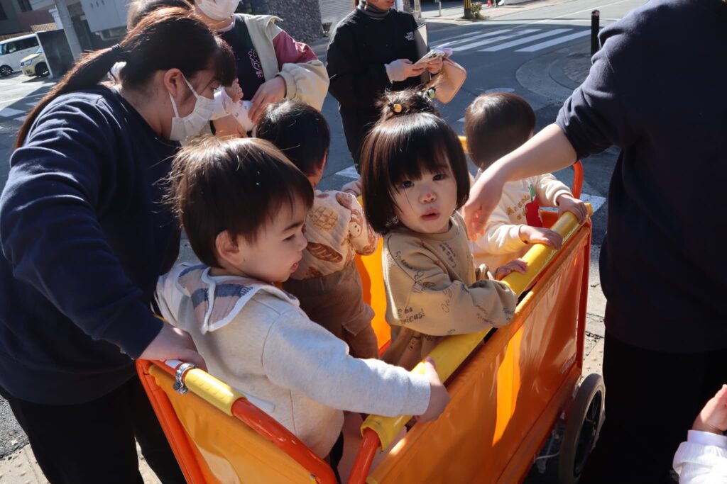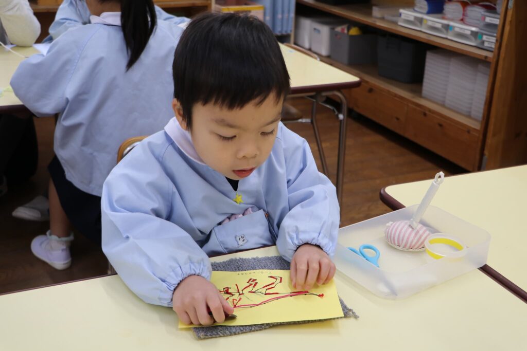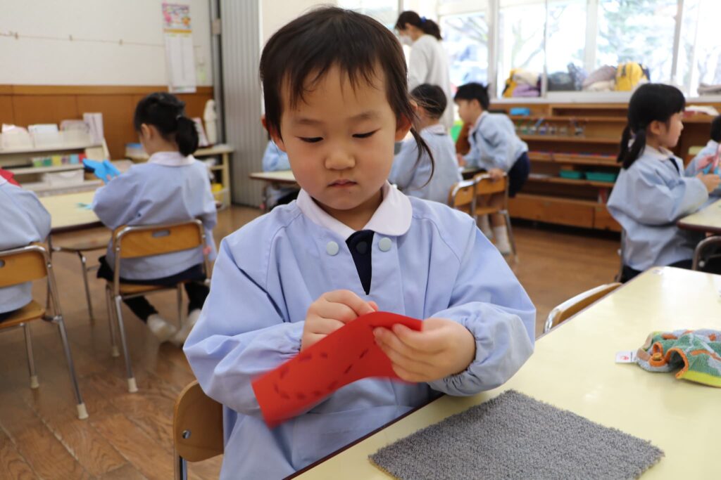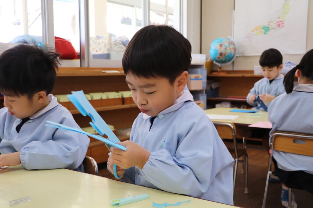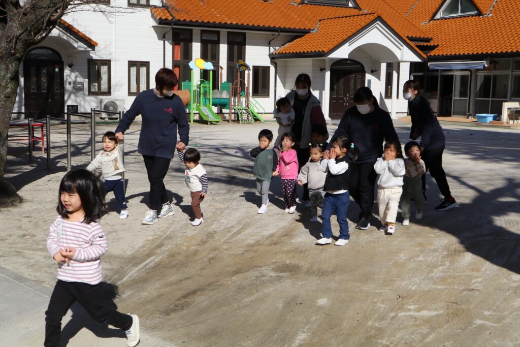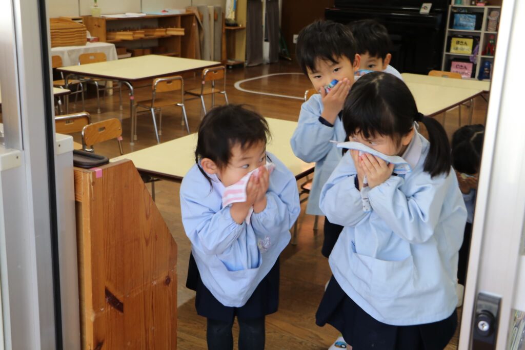 地震が起きたことを想定し、幼稚園から避難指定校へ歩いて避難しました。