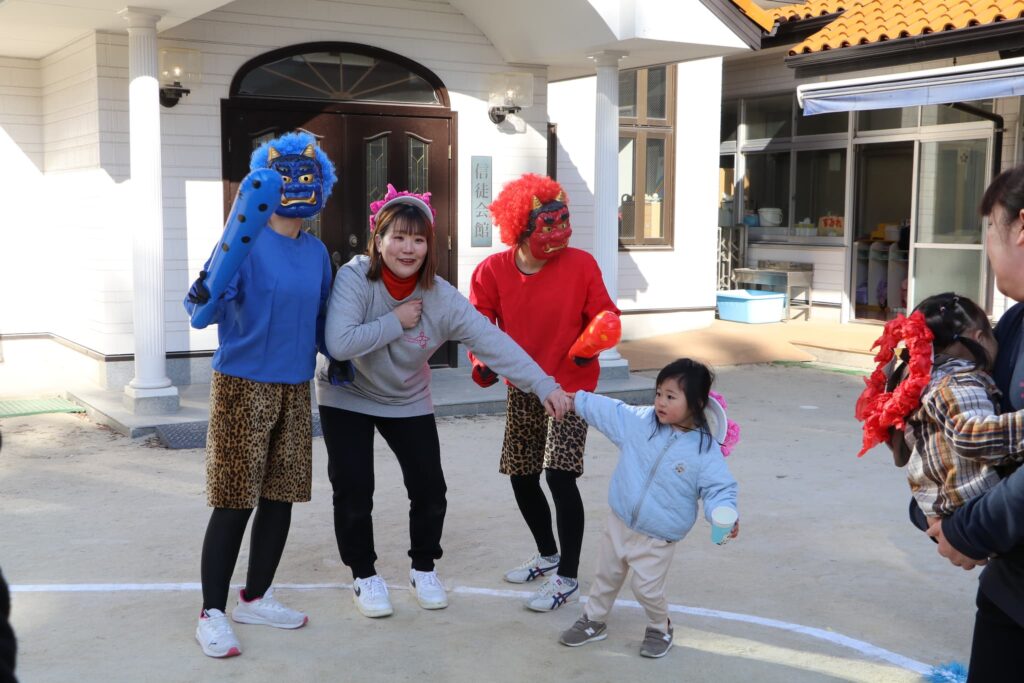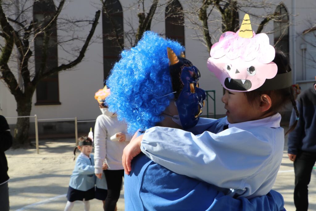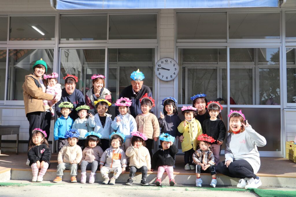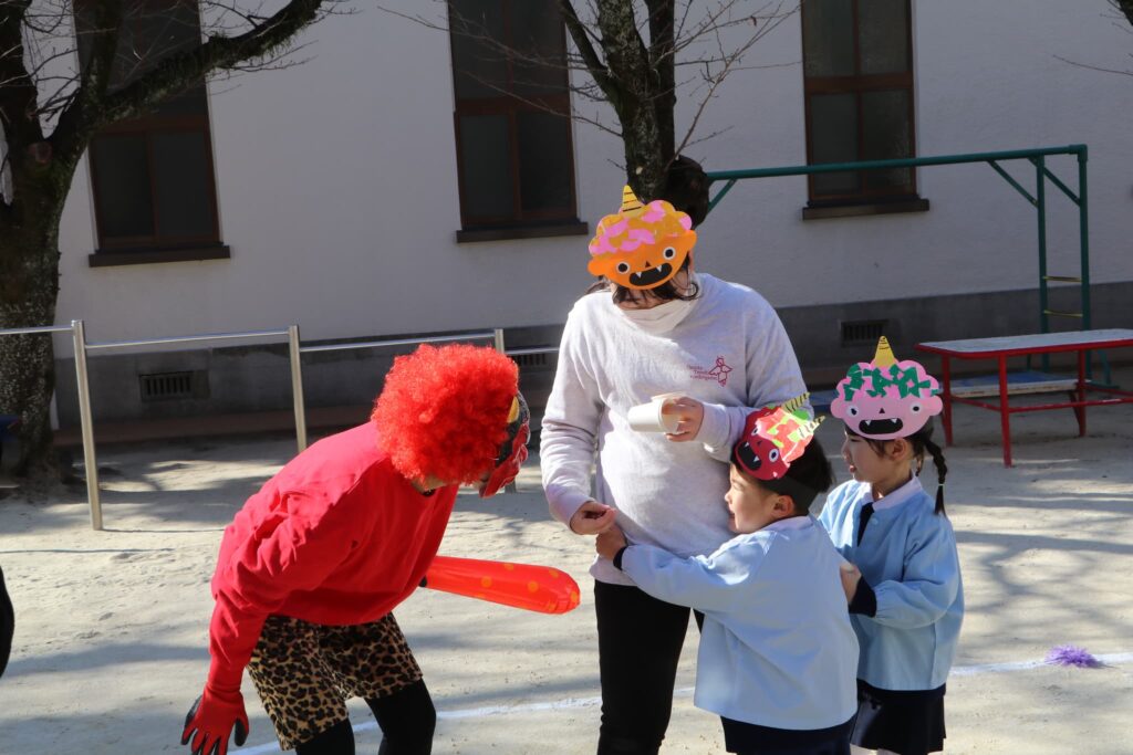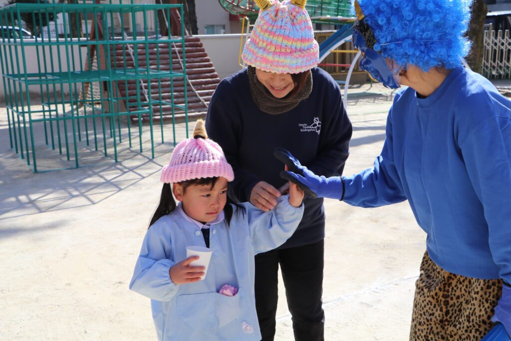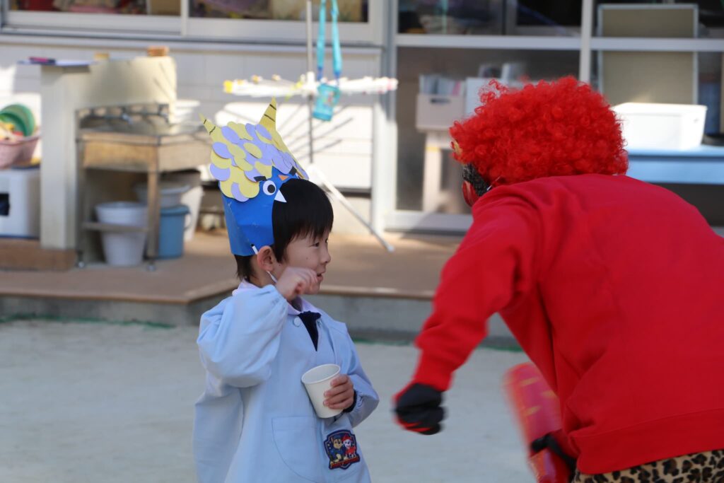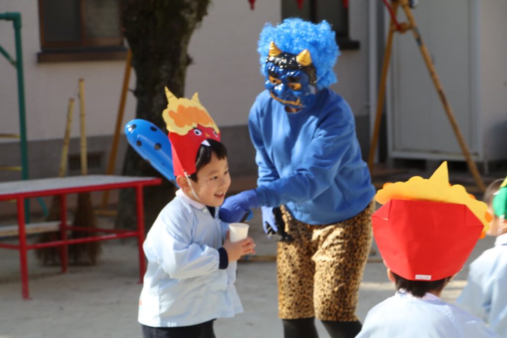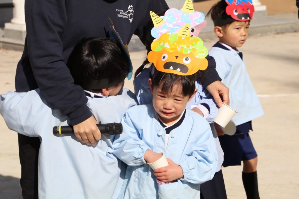 子どもたちが苦手とする日、『節分』。心の中にいる鬼を退治するために、怖い鬼さんにも立ち向かい、優しい福の神を招き入れることができたようです!子どもたちが製作した鬼のお面、帽子。お家で豆まきをするときにぜひ使ってくださいね♪
