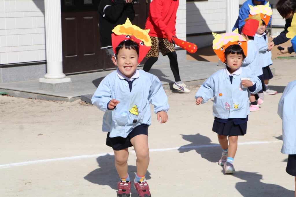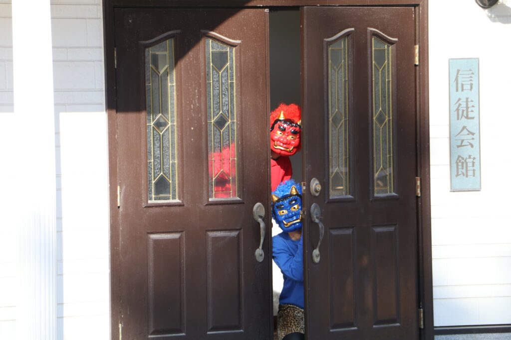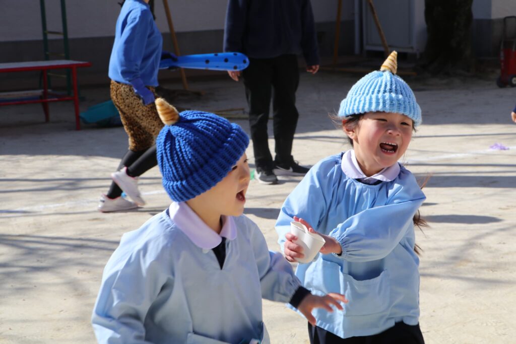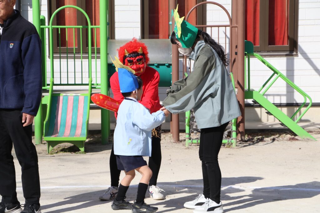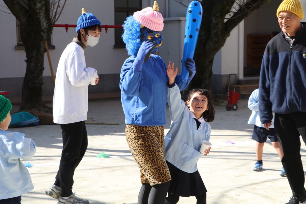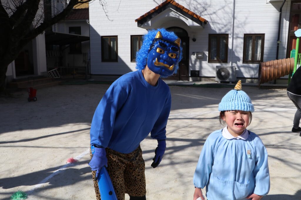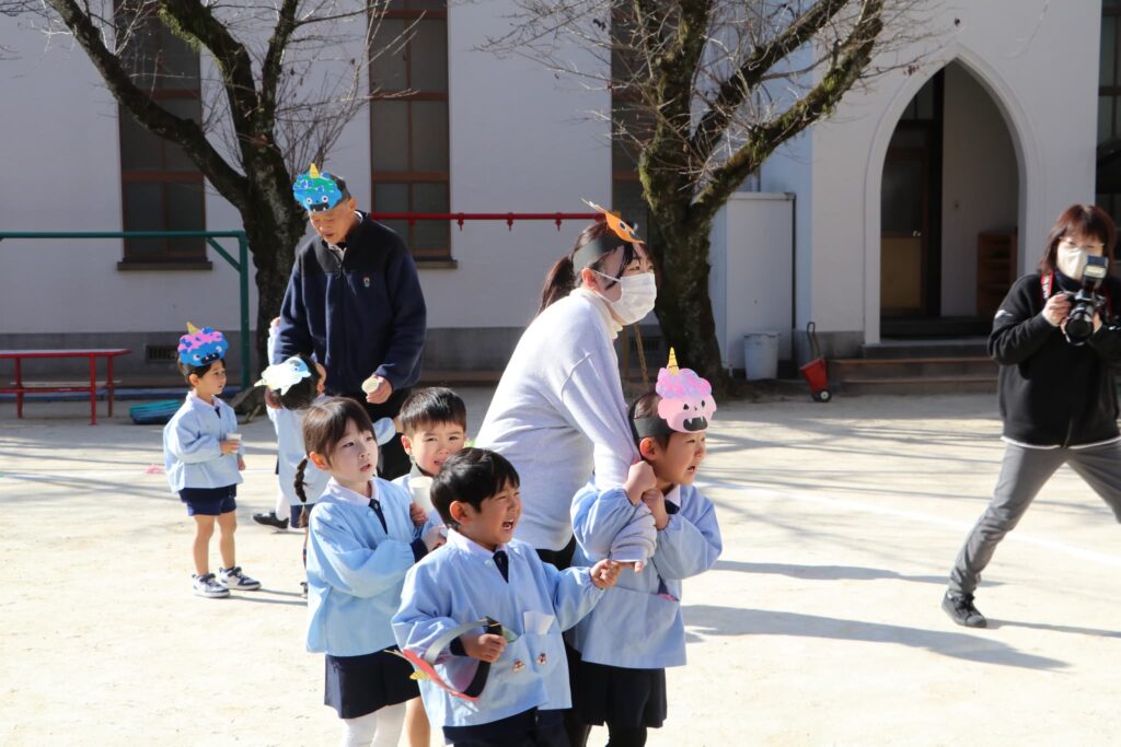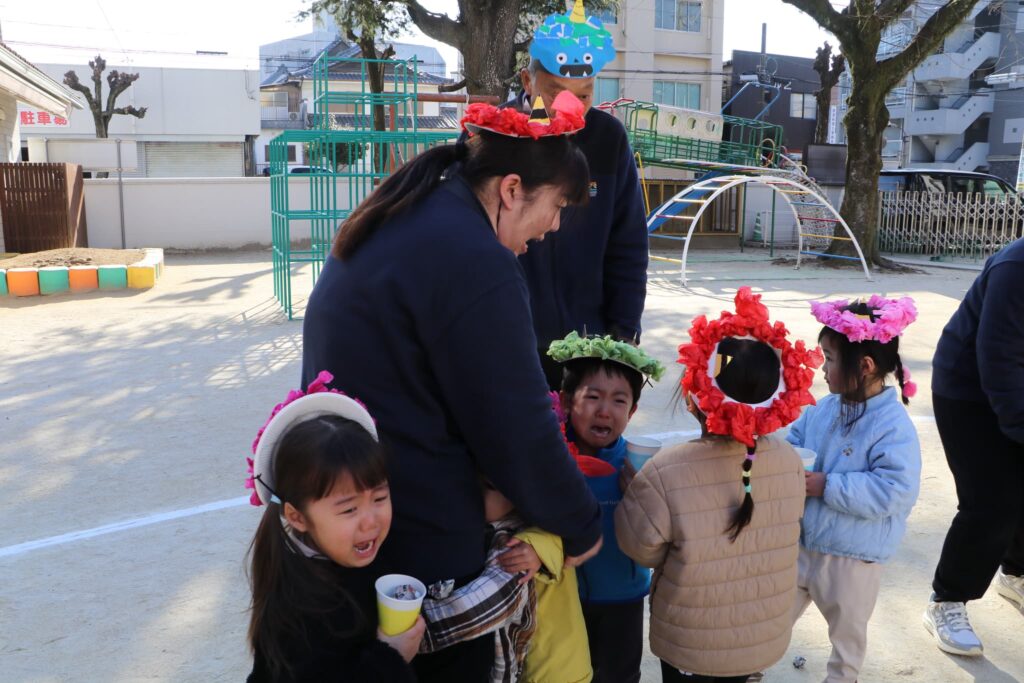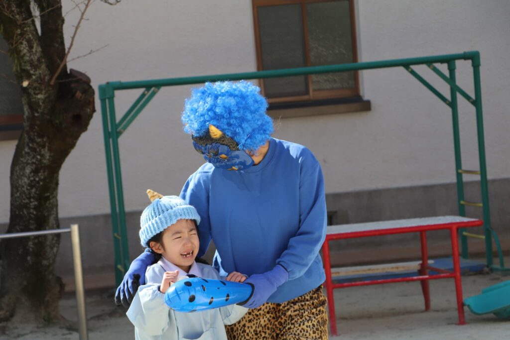子どもたちが苦手とする日、『節分』。心の中にいる鬼を退治するために、怖い鬼さんにも立ち向かい、優しい福の神を招き入れることができたようです!子どもたちが製作した鬼のお面、帽子。お家で豆まきをするときにぜひ使ってくださいね♪