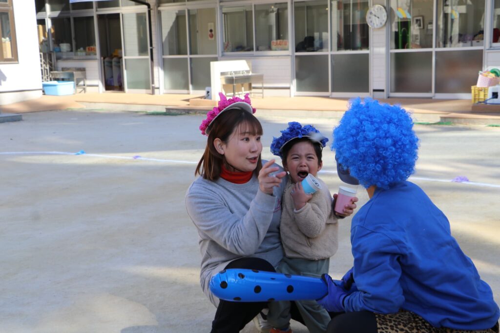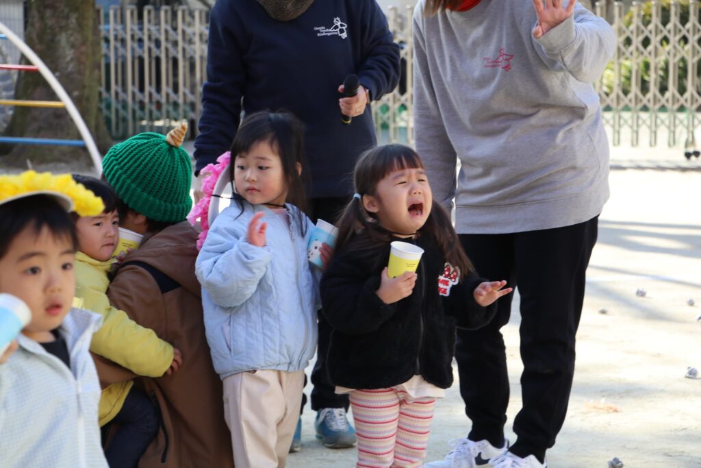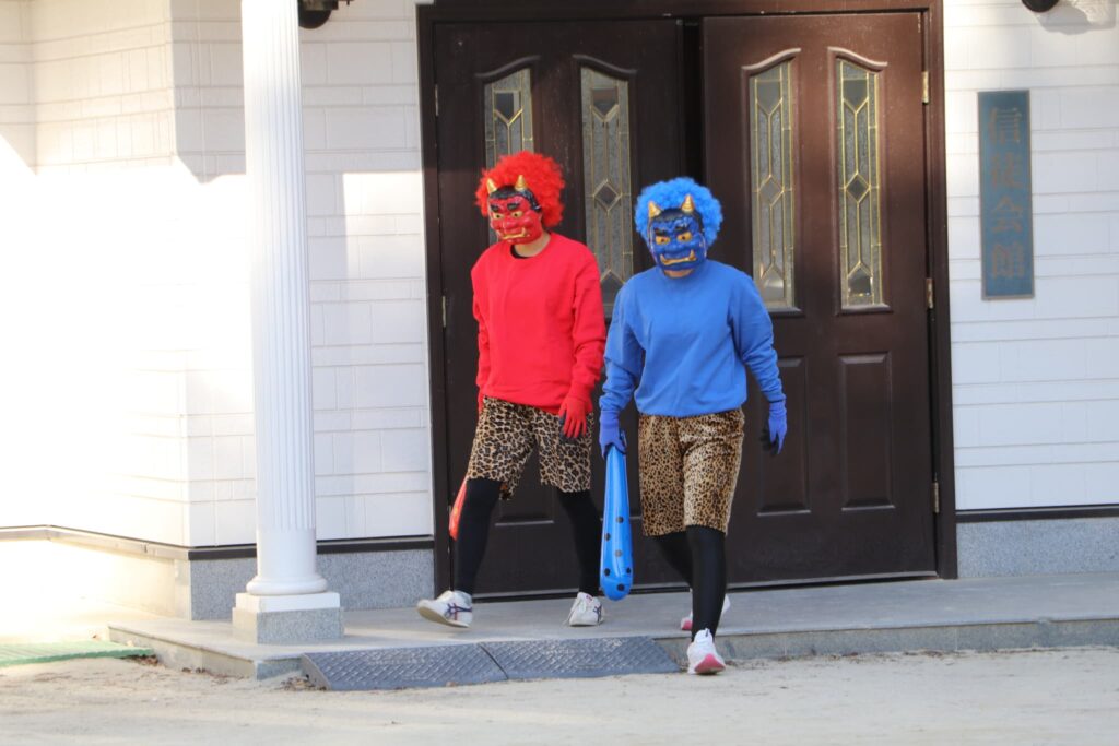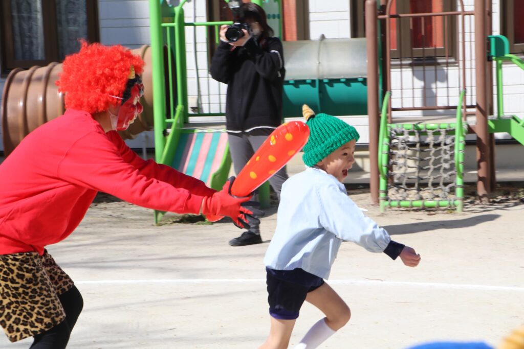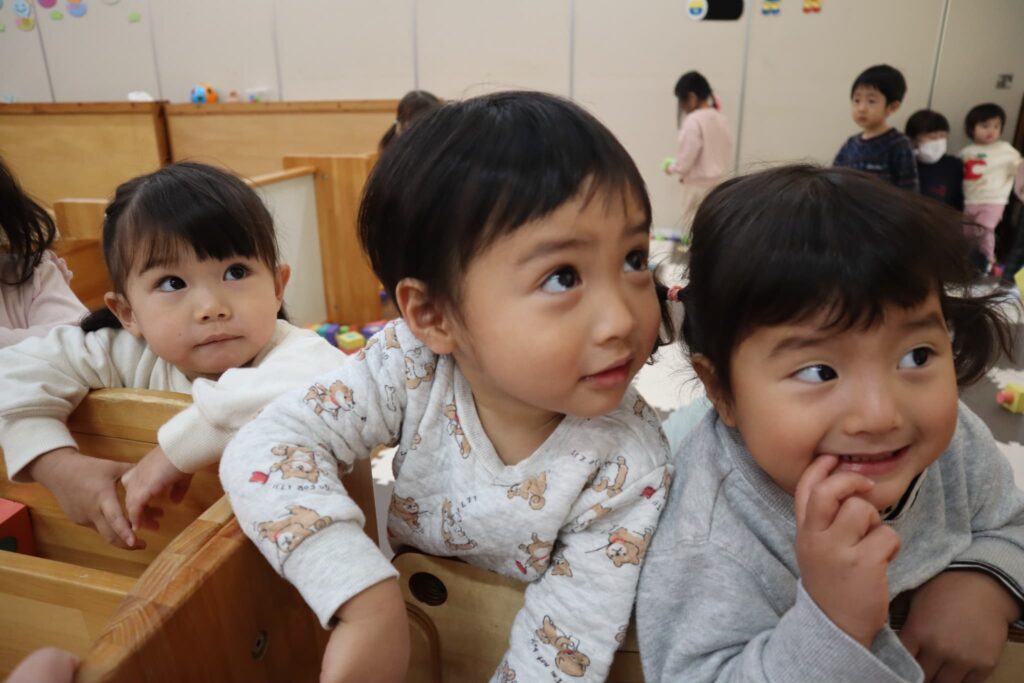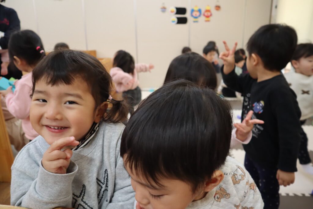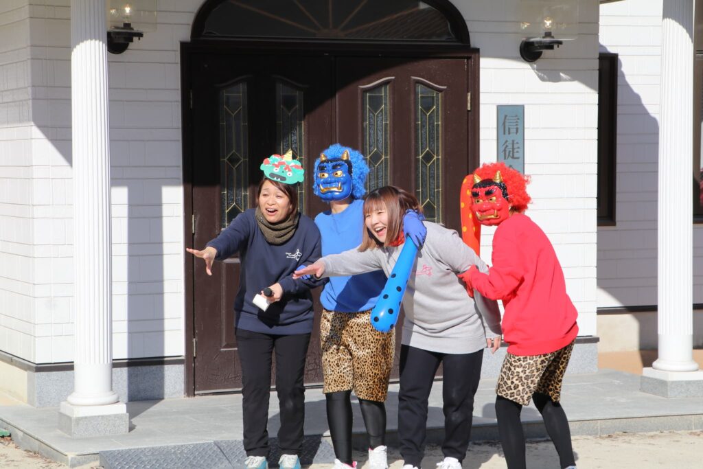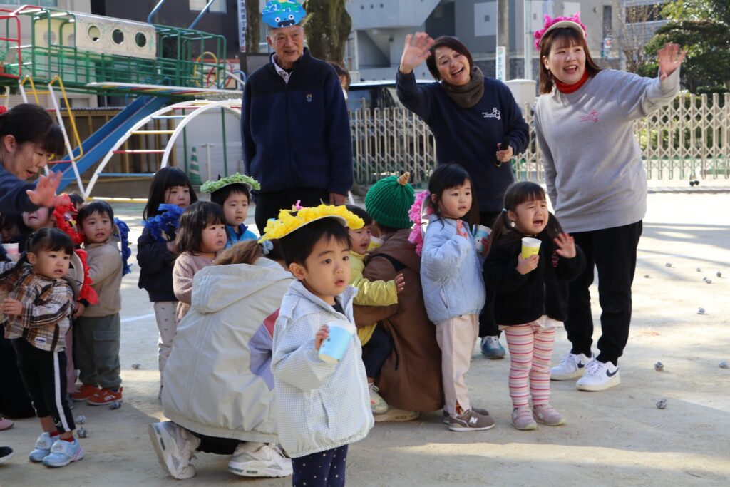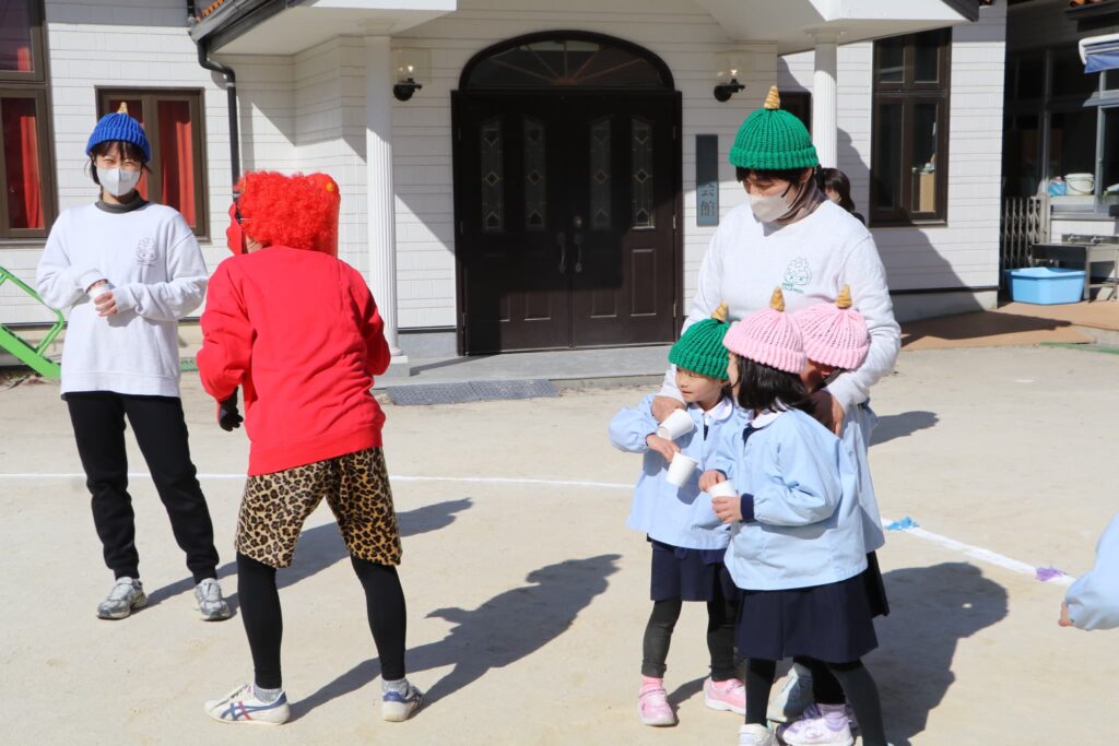 子どもたちが苦手とする日、『節分』。心の中にいる鬼を退治するために、怖い鬼さんにも立ち向かい、優しい福の神を招き入れることができたようです!子どもたちが製作した鬼のお面、帽子。お家で豆まきをするときにぜひ使ってくださいね♪
