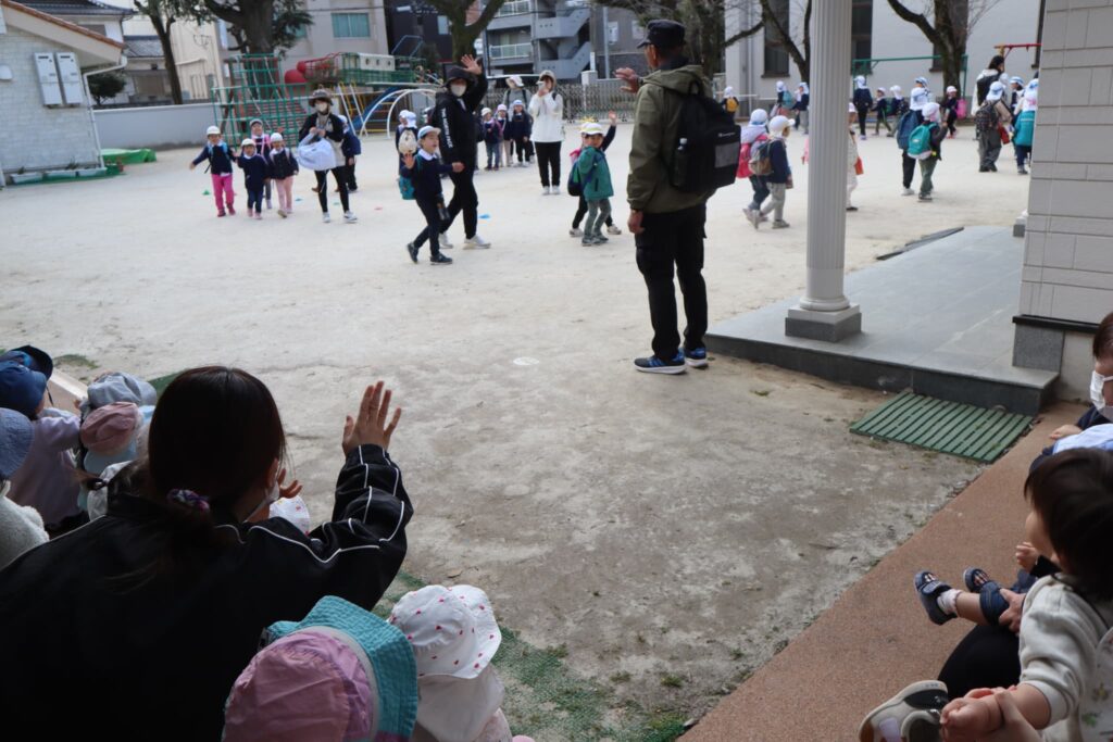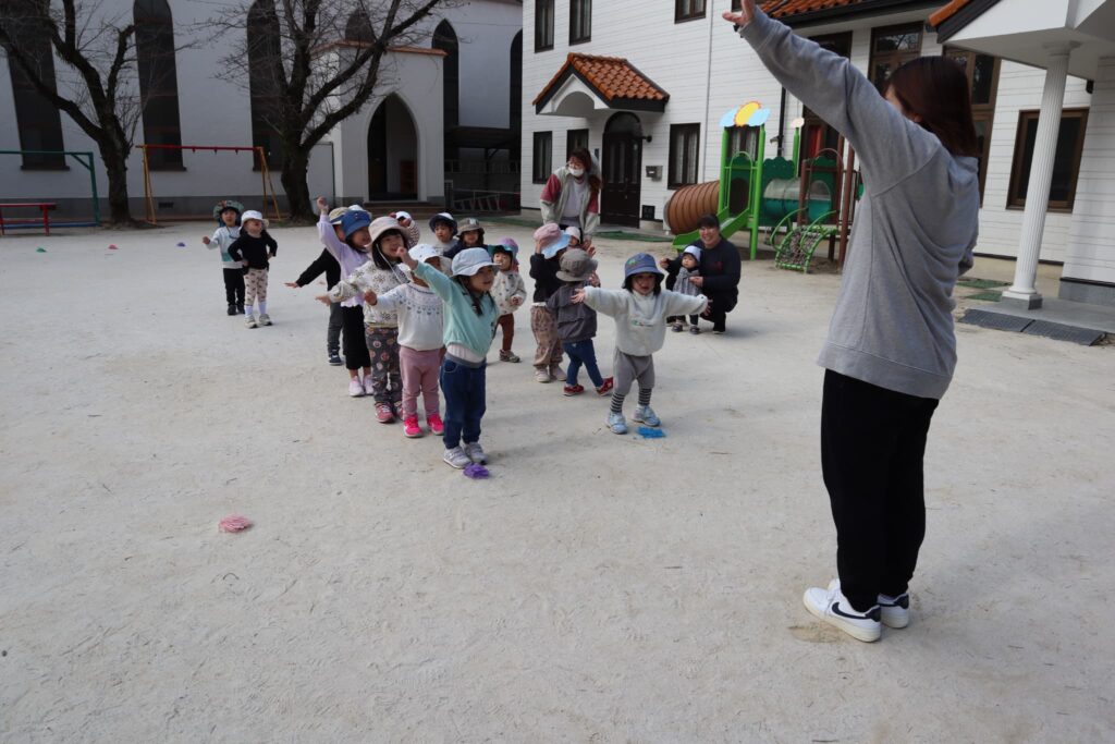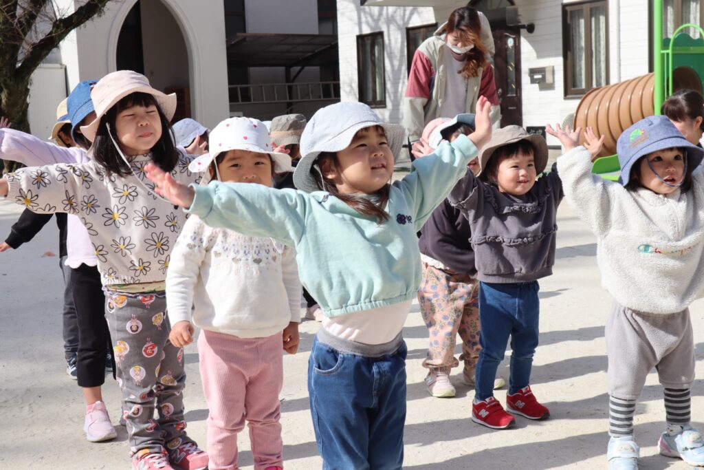 お兄ちゃん・お姉ちゃんのお見送りをして体操をしました✨